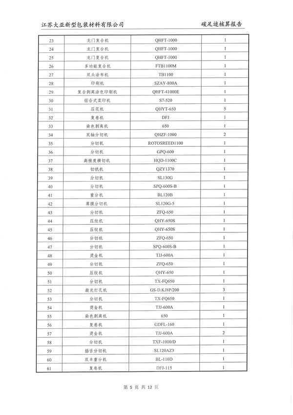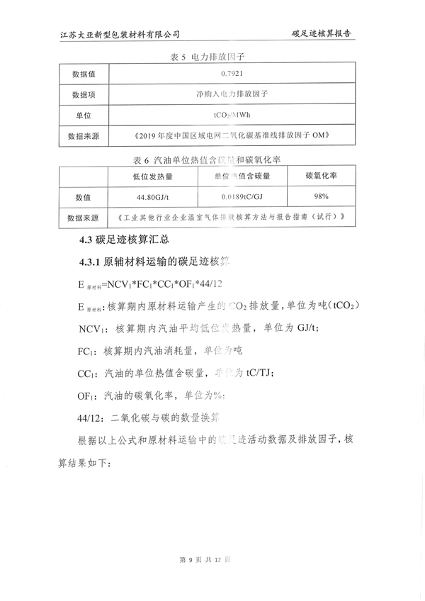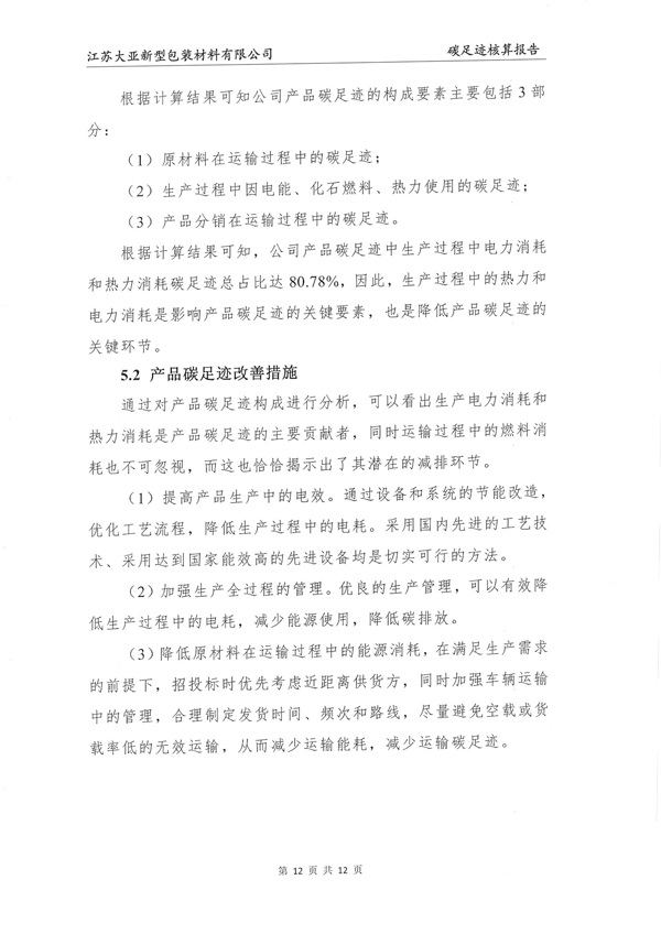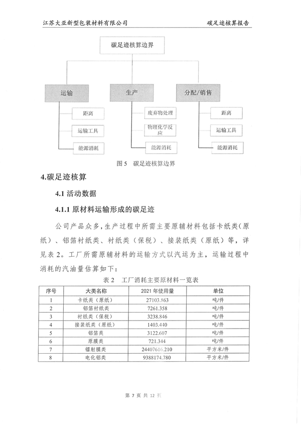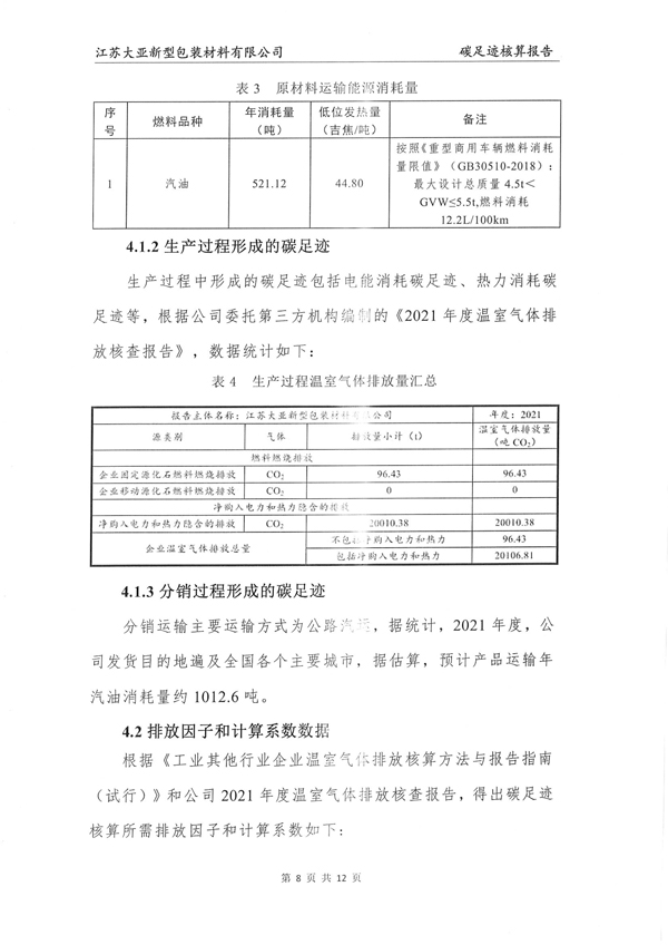 江苏大亚新型包装材料有限公司碳足迹核算报告
